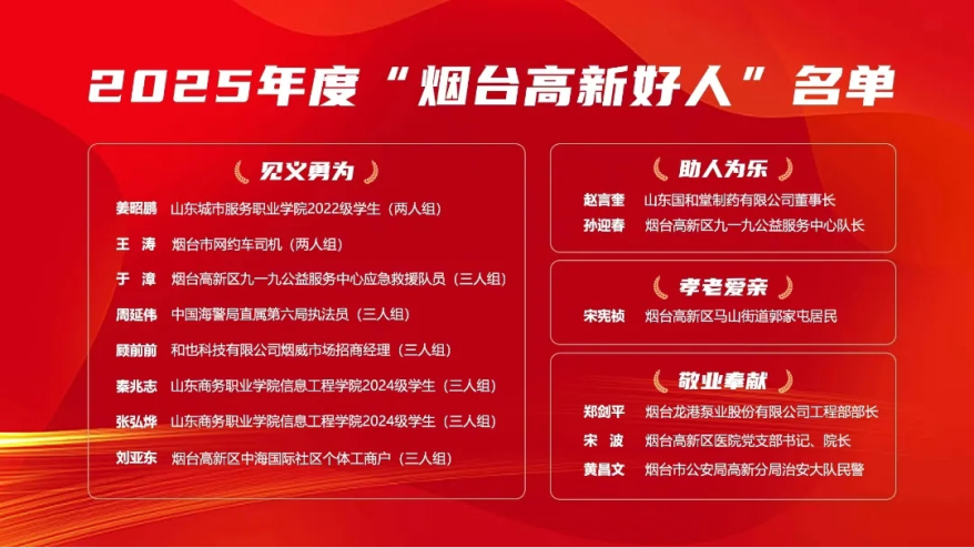 “烟台高新好人”评选活动由烟台高新区工委宣传思想文化工作领导小组办公室组织开展,旨在深入践行社会主义核心价值观,发掘身边好人、弘扬好人精神,培育文明新风尚,营造崇德向善、见贤思齐的社会氛围,评选对象涵盖辖区内各行各业品德高尚、事迹感人、群众认可的先进个人,其中见义勇为类重点表彰为保护他人生命财产安全、挺身而出的凡人英雄。此次秦兆志、张弘烨两位同学获此殊荣,既是对他们见义勇为行为的高度肯定,也是学校立德树人成效的生动体现,更是新时代青年担当精神的鲜活彰显。