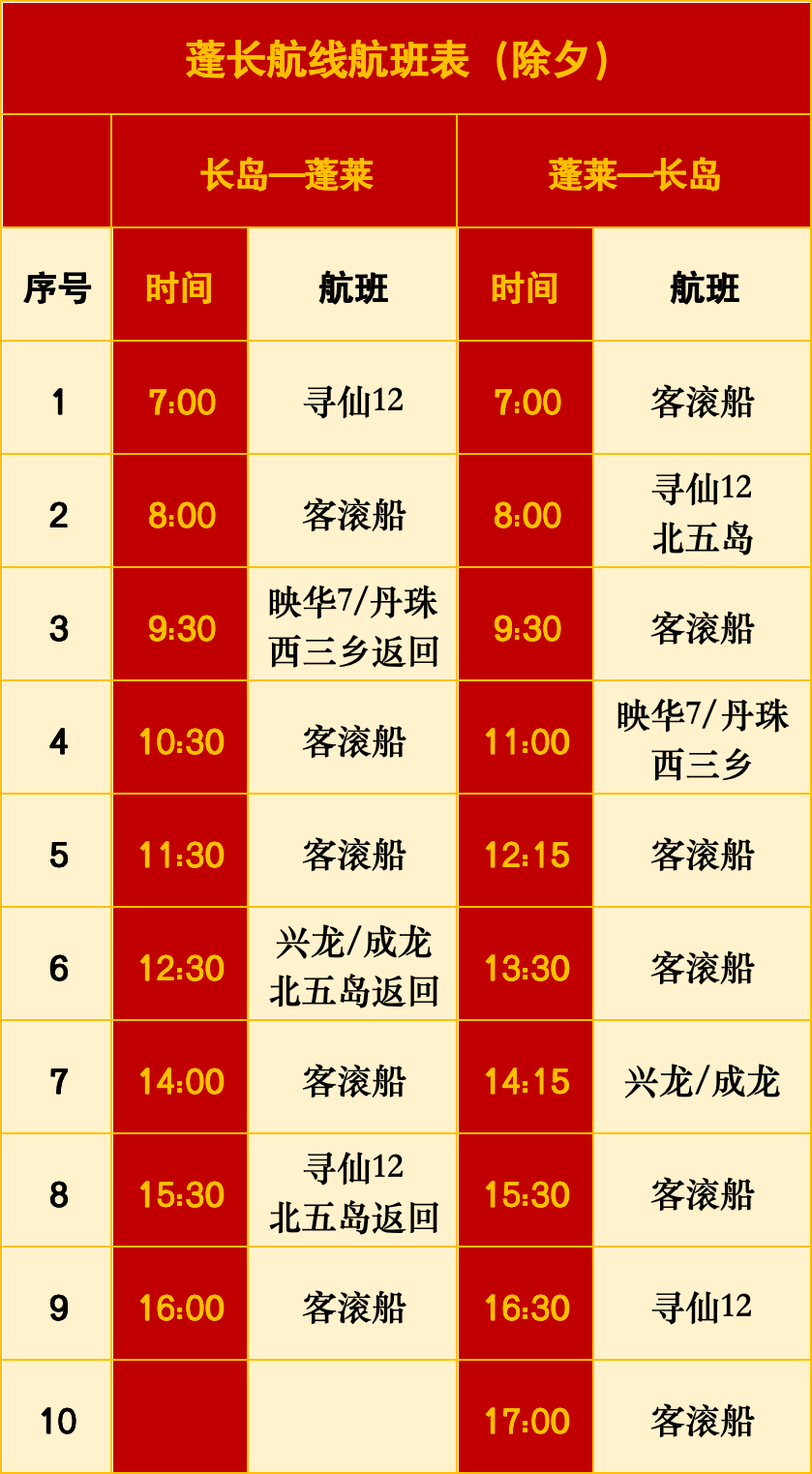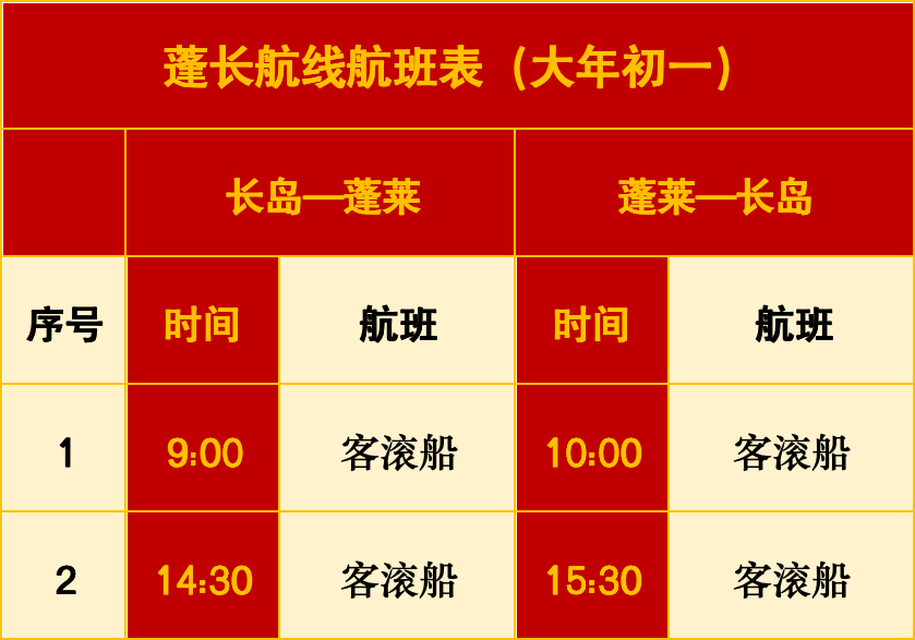 温馨提示:节日航班受天气情况、船舶调配影响,如有变化,以临时公告为准。为保障您春节期间出行顺畅及安全,请密切关注气象变化及长岛船票航班公告,以免耽误您的行程。