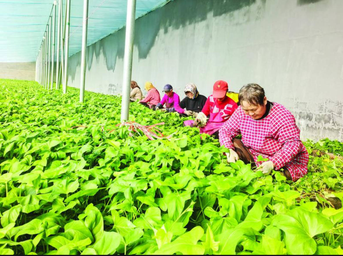 从外部看,冷棚和常见的蔬菜大棚大小相近,内里却别有洞天——冷棚里套着一人高的中型棚,中型棚内还有贴地棚,温室里掐好的薯苗就移栽到这里,循着“生根—移栽回温棚—再掐根”的循环模式,稳步完成扩繁。 “眼下是甘薯育苗最关键的窗口期,一天都不能停。”代龙穿梭在苗株间,查看薯苗长势。他介绍,育苗车间春节不休假,全员坚守岗位抢进度,“现在多分一棵苗,秋天就能多一片甘薯的丰收。”