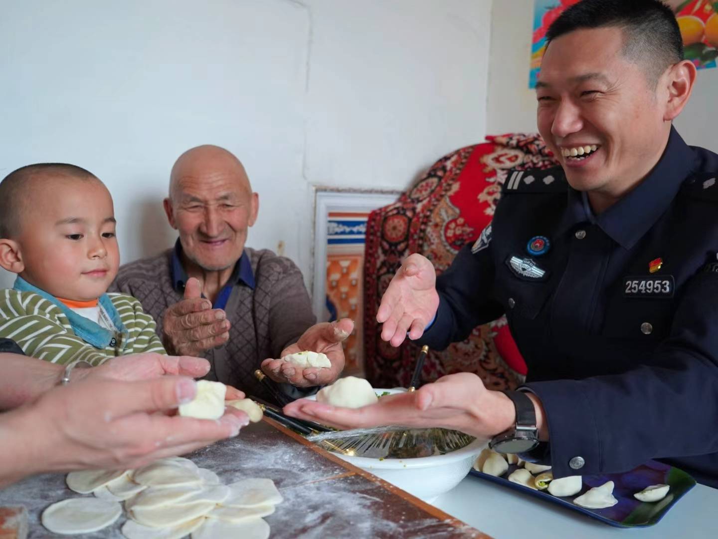 今年春节,他在新疆边检总站阿克青边境派出所蹲点,依然没有回家过年,默默地在雪山下巡逻,认真地在辖区了解社情民意。几天前的走访过程中,李小鹏结识了一位与十年前的儿子年纪相仿的留守儿童,孩子的父母远在外地,无法返乡过年,只有年迈的爷爷奶奶相伴。看着孩子期盼团圆的眼神,李小鹏仿佛看到了远方的儿子,他主动留下来陪伴祖孙三人,挂灯笼、包饺子,热热闹闹吃上了一顿特殊的团圆饭。饭菜虽简,却满是温情,他以这样的方式,把对家人的思念化作对辖区群众的守护。