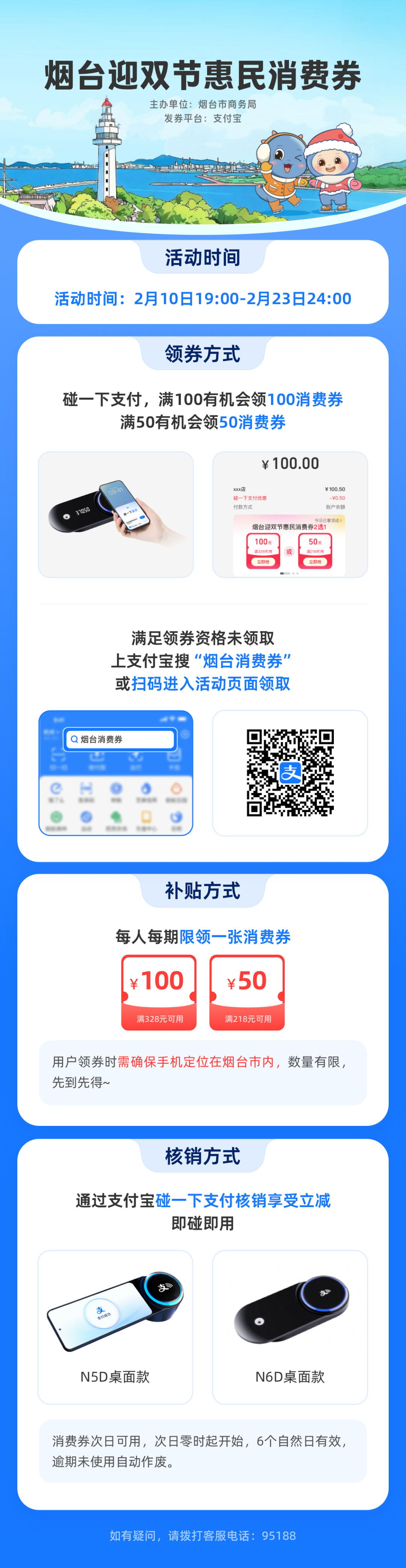 请广大市民和来烟游客合理安排消费时间,欢度新春佳节,共享惠民消费福利。