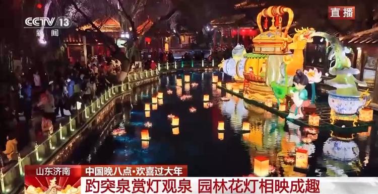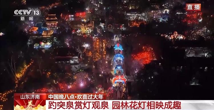总台记者 曹俊懿:欢迎大家来到大年初一的山东济南。我现在就在趵突泉公园。此时此刻花灯璀璨、游人如织,整座园子被节日的灯火点亮。