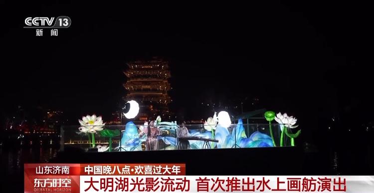 接下来要去的是济南。大年初一,春节到趵突泉赏灯观泉,是不少济南市民延续多年的传统。今年当地更是将夜游线路进行了升级更新,“一河连三景”,由护城河串起趵突泉、大明湖、五龙潭三大景区,泉水、湖水、亭台楼阁、水上表演和两岸灯火一起,形成一幅流动的光影画卷。