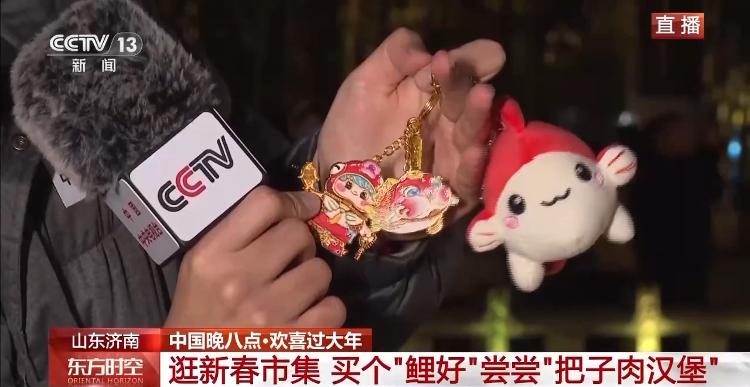 济南天下第一泉景区还推出了多样文创产品。我来给大家介绍其中很受欢迎的一位朋友,就在我的手上,它叫“鲤好”,是锦鲤的“鲤”字,有钥匙扣、冰箱贴、毛绒玩具多种形态。它以趵突泉泉水中的锦鲤为原型设计而成,寓意吉祥如意,可以让人们在新年把泉水里的好运带回家。