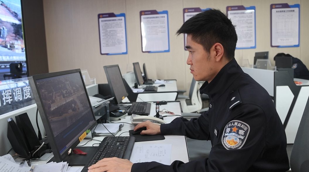 在栖霞市庄园派出所,民警曹峻恺像往年一样,在岗位上度过春节。“这是我第5次春节期间值班,”曹峻恺说,“值班期间,我们主要负责110接出警、执法办案、巡逻防范、场所检查、景区执勤等。在接到群众报警后,我会第一时间赶往现场处置,全力保护人民群众的人身和财产安全。”