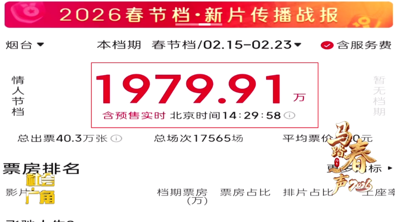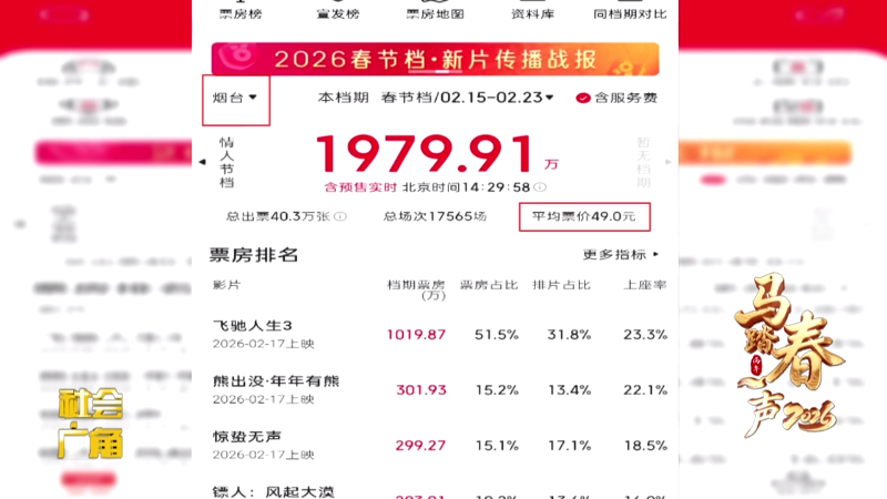 相比之下,去年大年初一烟台单日票房突破1000万元。