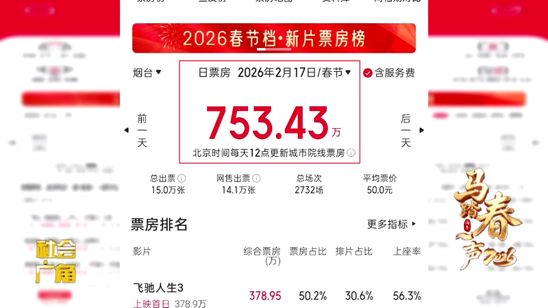 而在全国票房方面,大年初一的《飞驰人生3》以6.41亿元领跑,远超去年同期的《哪吒之魔童闹海》4.87亿元,《惊蛰无声》则以2.38亿元位列第二。
