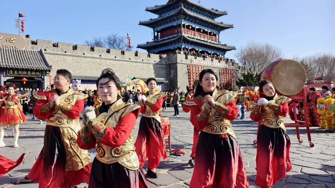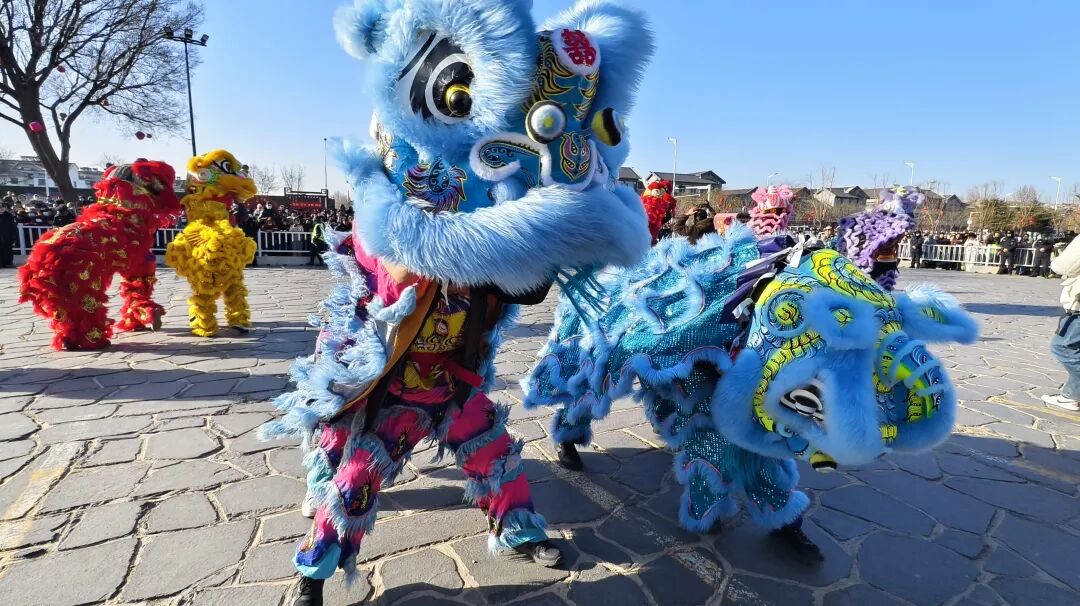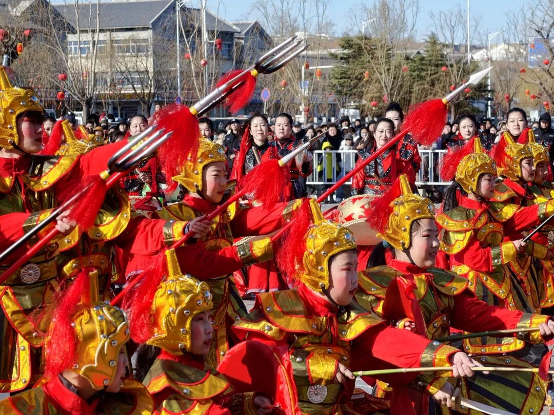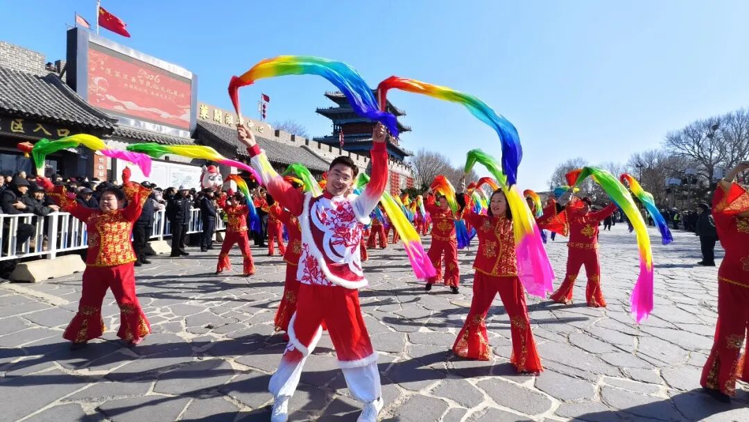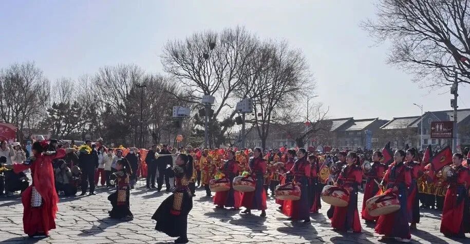 现场锣鼓喧天,人潮涌动,欢歌如潮