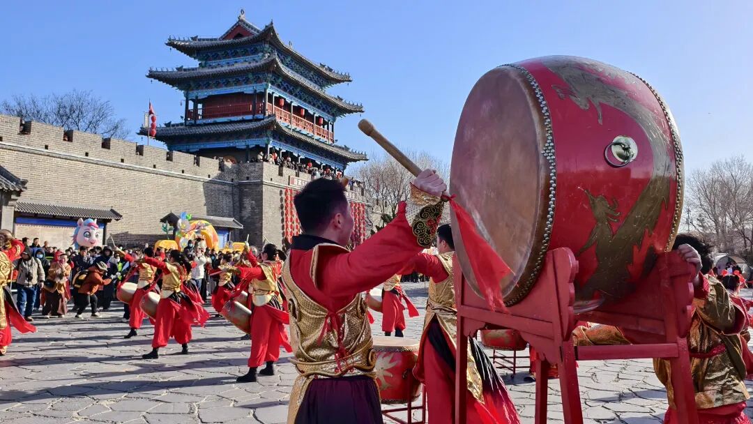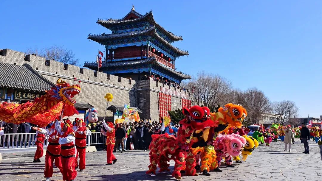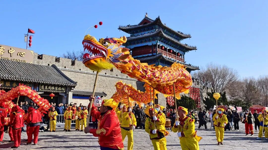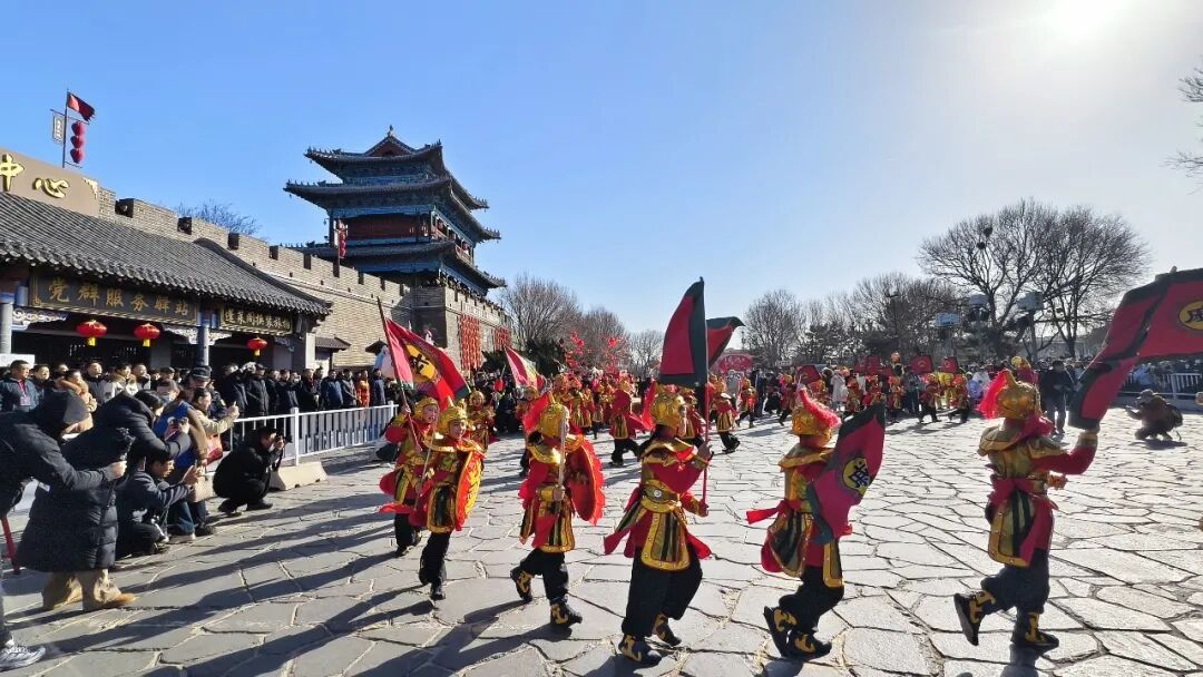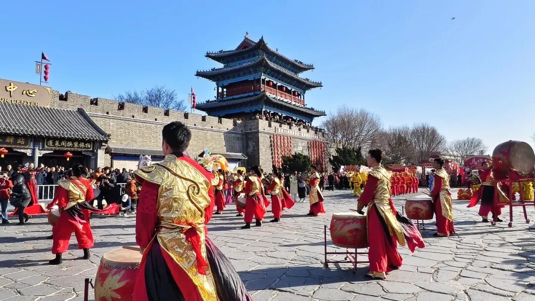 现场锣鼓喧天,人潮涌动,欢歌如潮