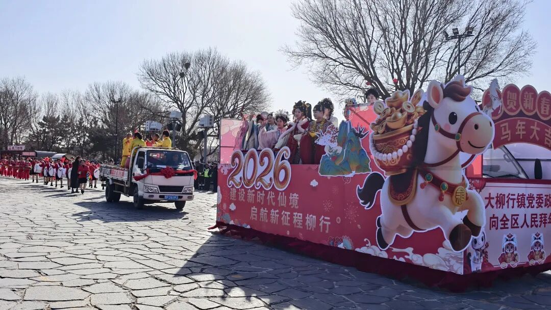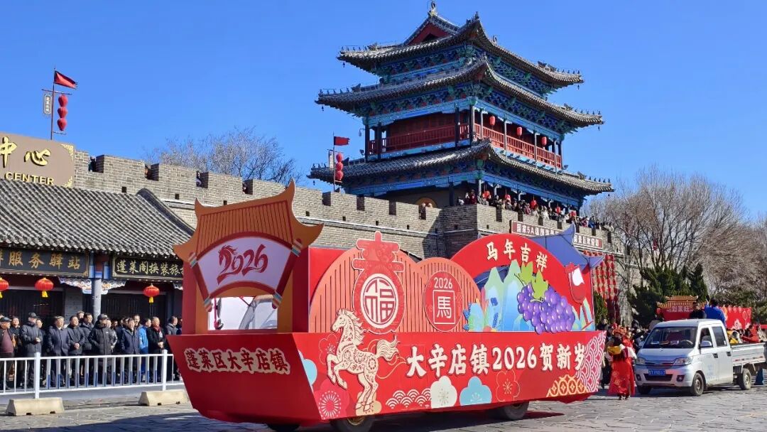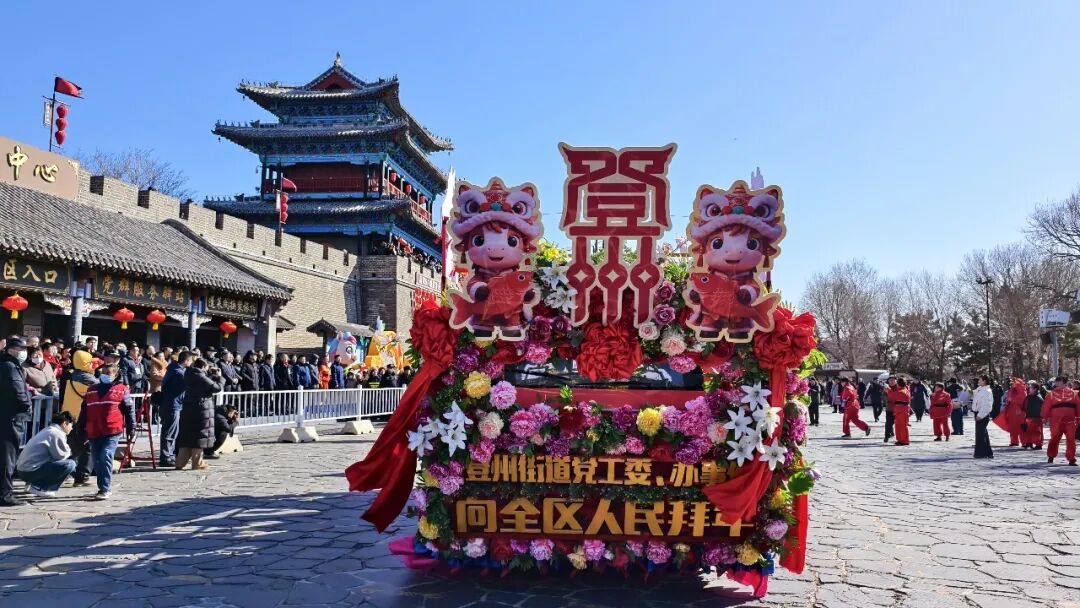 来自蓬莱11个镇街的秧歌队1800余人齐聚一堂,用最热闹的民俗盛宴为广大市民和游客献上一场喜气洋洋的新春狂欢。装扮一新的特色花车闪亮登场,满载各镇街的美好祝福,风格鲜明、亮点十足。行进间尽显精致与创意,成为盛会里一道靓丽风景线。