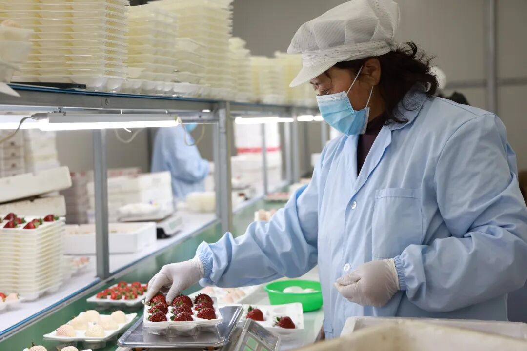一次偶然的机会,她接触到白草莓,便决定转型尝试。与普通草莓不同,高端品种对种植技术和品质管控要求极高。“当时收购上来的草莓,品质达不到出口标准。”于贞贞回忆道。面对瓶颈,她没有退缩,而是做出了一个大胆的决定:自己流转土地,从源头把控品质。