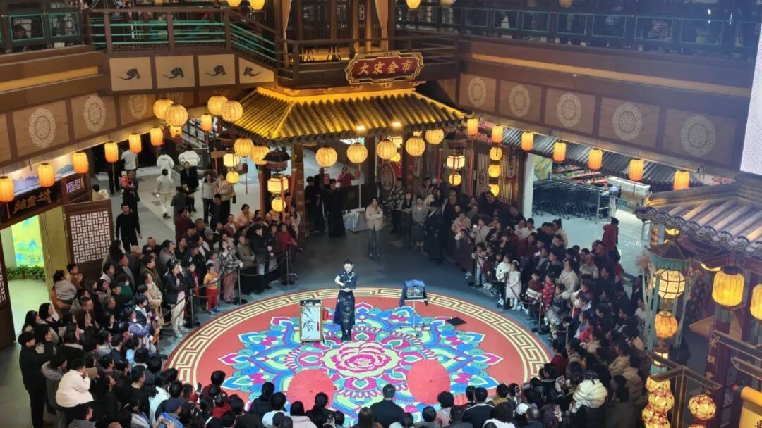 大户庄园年货大集、府前广场“海洋大集”整合全市优质农产品和非遗年货资源,一站式年货采购体验深受群众欢迎。“非遗进宾馆”活动持续发力,金都宾馆、金城温泉大酒店、龙湖大酒店同步开设非遗商品展,让游客在住宿休闲中感受非遗魅力,推动非遗文化与文旅消费深度融合。