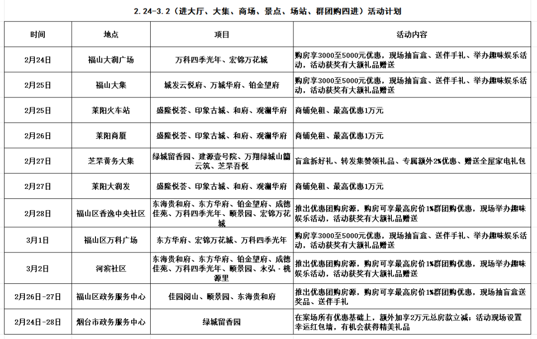 “冬藏美好 春暖烟台”住房促消费活动自启动以来,在全市范围内取得了良好反响,吸引了众多市民和返乡人员的广泛参与。随着春节假期结束,活动热度不减,将继续为有安居需求的市民提供持续服务。2月24日至3月1日,活动将继续以“进大厅、进大集、进商场、进景点、进场站、群团购”为主线,在全市主要政务服务大厅、商业中心、交通枢纽及社区场所继续设立咨询服务点,整合优质房源信息,提供政策解读、现场咨询、需求登记等便民服务。活动现场还设置购房优惠及互动环节,方便市民在节后第一时间获取最新的市场动态与房源资讯。欢迎有购房意向的市民朋友前往各活动点位了解详情,获取专业建议与实用信息。活动将持续推进,助力更多家庭实现安居愿景。