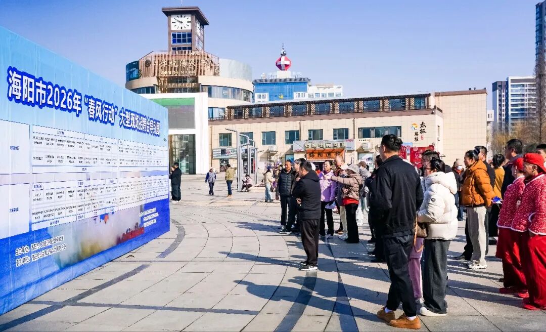 2月25日,由海阳市人力资源和社会保障局主办的2026年“春风行动”大型现场招聘会在新元广场成功举办。活动以搭建精准对接平台、服务企业用工、促进群众就业为目标,现场人气高涨、氛围热烈,有效架起企业与求职者之间的就业桥梁。
