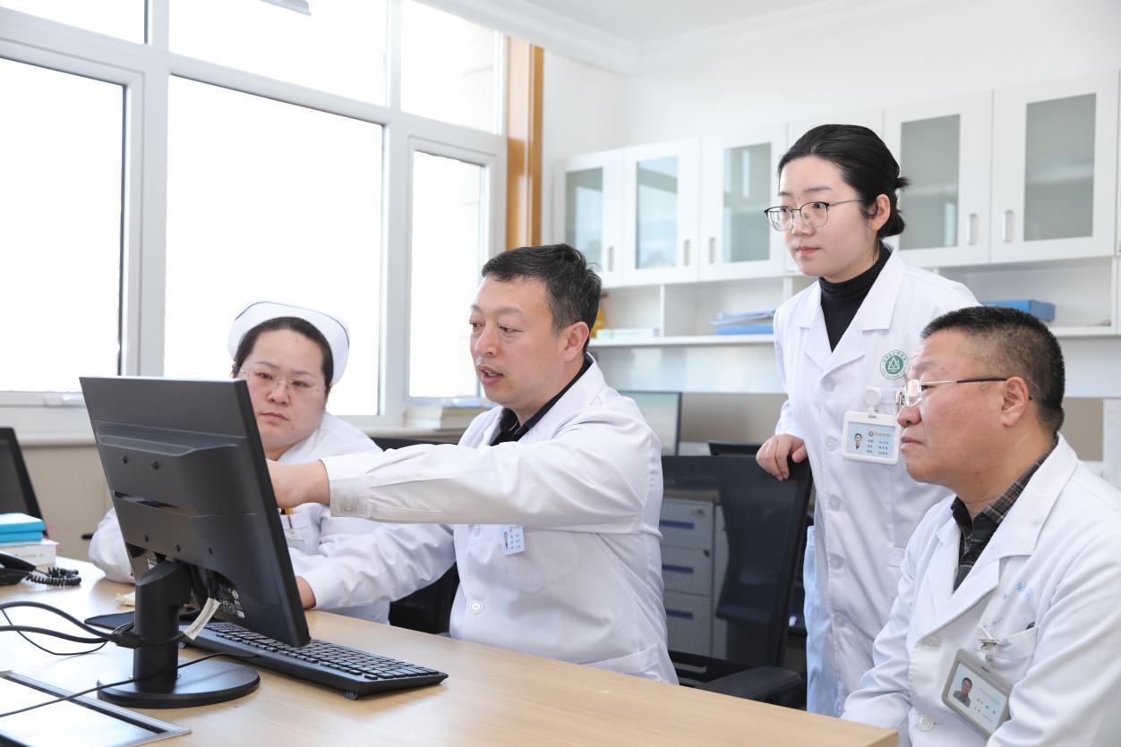 连海峰(左二)团队讨论患者病情