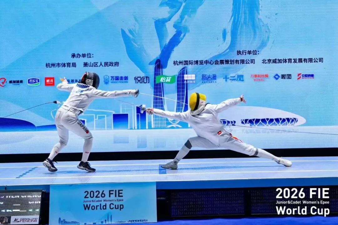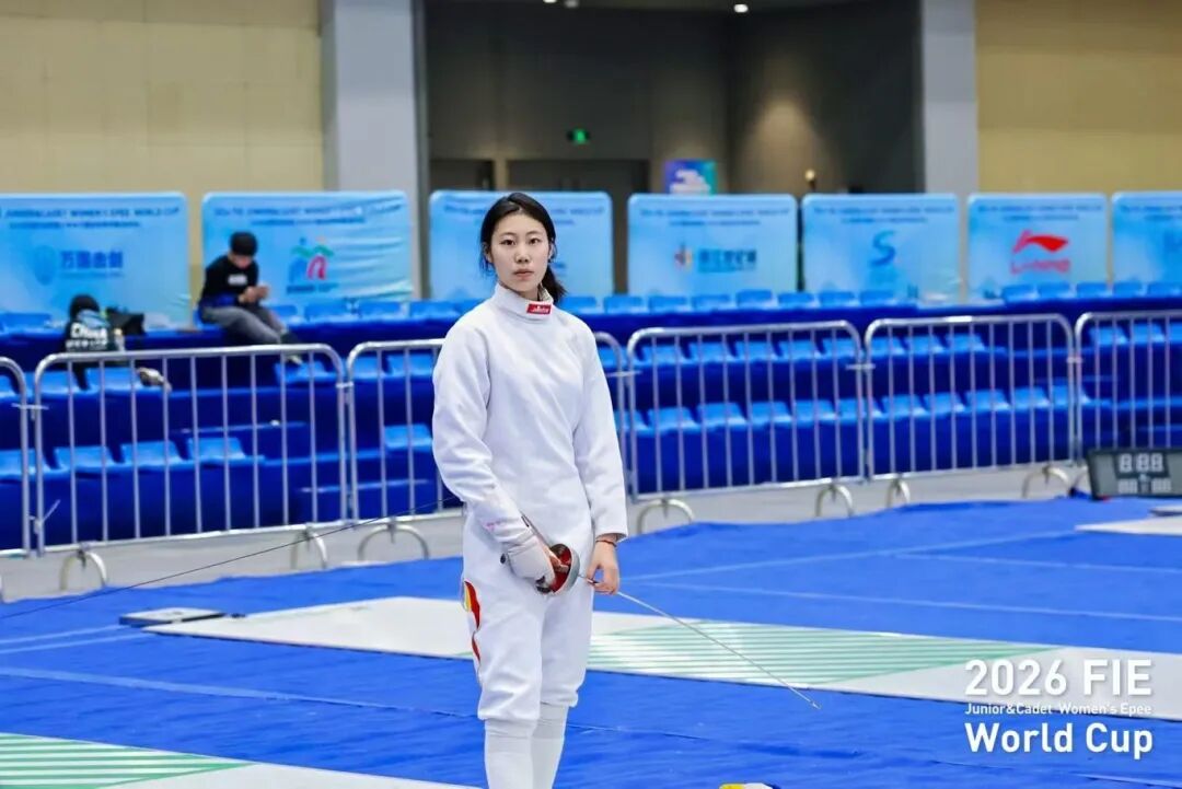 2月14日,国际剑联青少年女子重剑世界杯(杭州站)赛场,温程程与队友并肩作战,凭借沉稳发力与默契配合,斩获青年组女子重剑团体亚军,在家门口展现中国少年剑客的强劲实力。