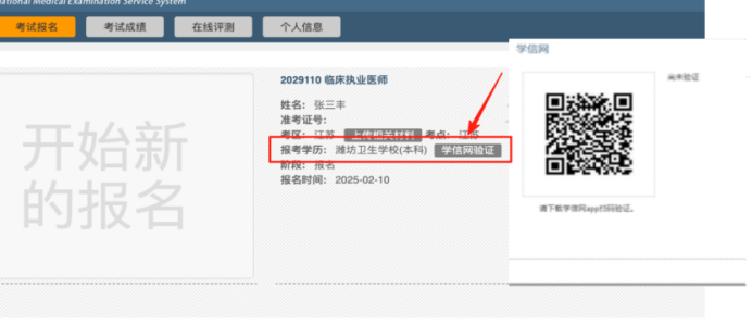 2.点击“学信网验证”进行学信网扫码验证/更新。