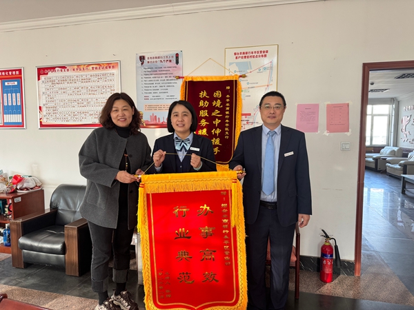 烟台融媒2月27日讯(通讯员 杨晓 赵灿灿)2月25日,客户刘女士为烟台农商银行牟平区支行营业部送来一面“办事高效 行业典范”的锦旗,对烟台农商银行优质高效服务表示由衷的感谢。