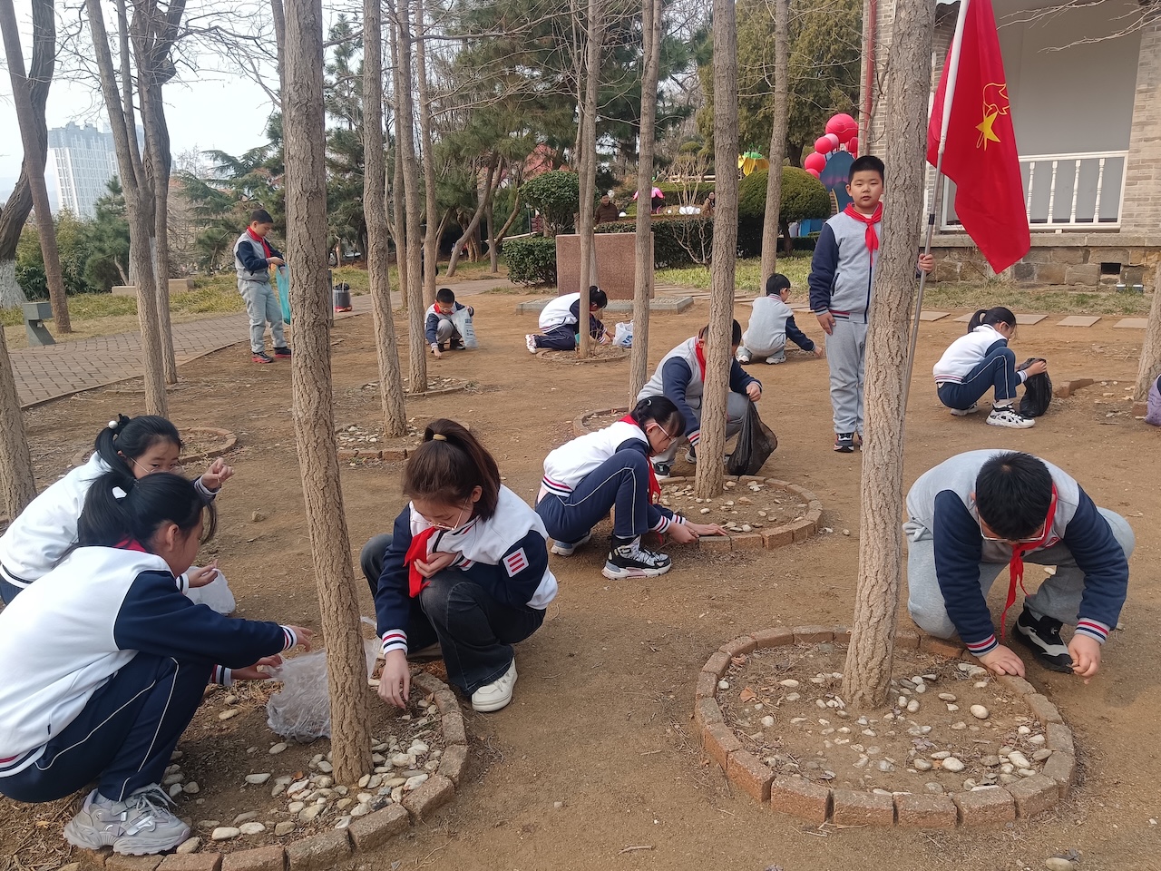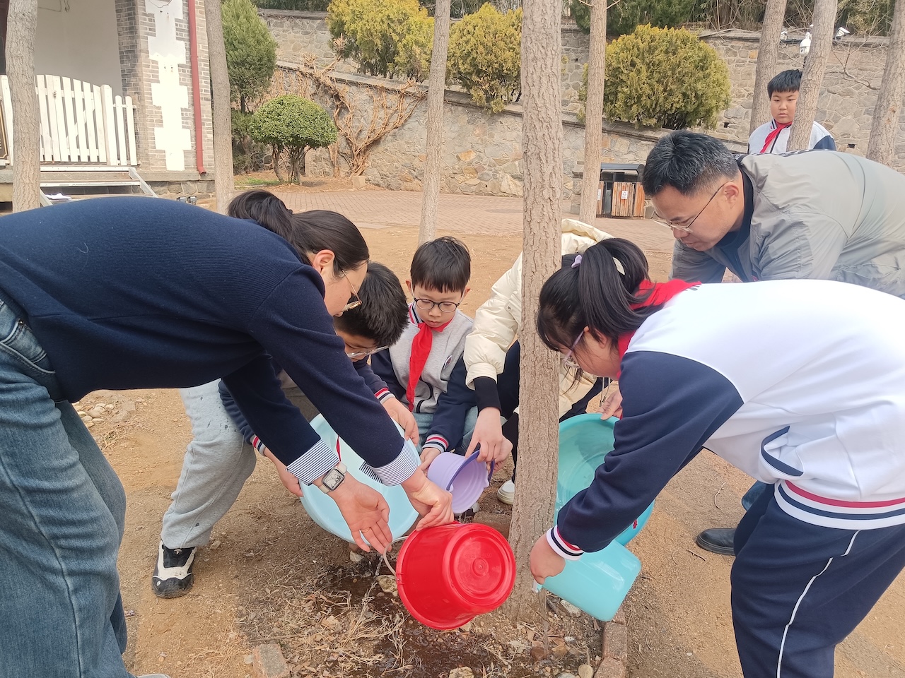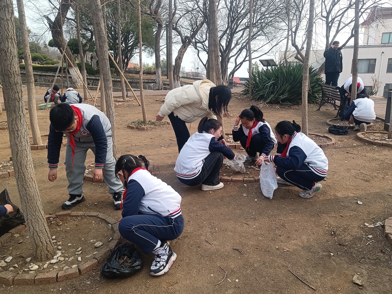 活动中,学生代表宋婧意同学深情讲述“养正林”的由来,带领大家重温学校发展历程与绿色传承故事。随后,党员代表与学生代表分工协作、默契配合,认真开展松土、捡拾枯叶垃圾、浇灌树苗等劳动,用实际行动呵护一草一木。