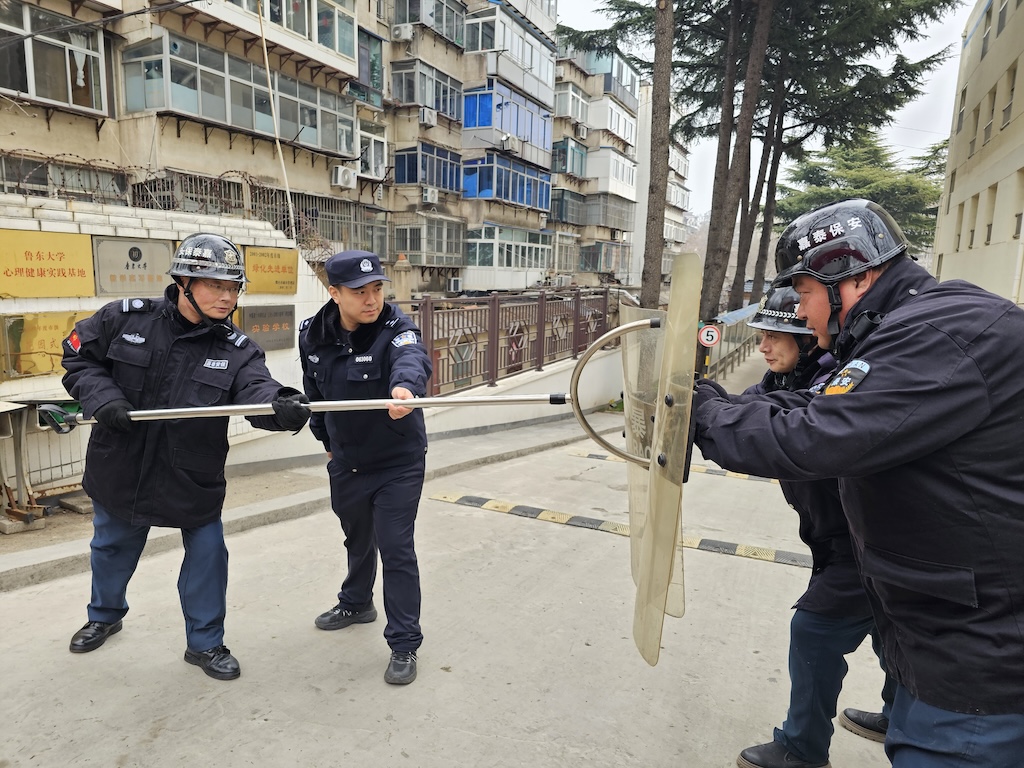 各班级开展“反恐防暴开学第一课”主题活动。教师通过案例讲解、知识科普等形式,普及《国家安全法》《反恐怖主义法》等法律法规,讲解反恐防暴知识,引导学生树立安全自护意识。为提升实战能力,学校组织全体师生开展反恐防暴演练,并特邀芝罘区白石路派出所警官到校指导。警官现场对安保人员进行器械使用、应急处置流程专项培训,传授防控技巧。演练中,师生反应迅速、配合默契,有效提升了突发事件的快速反应与协同处置能力。