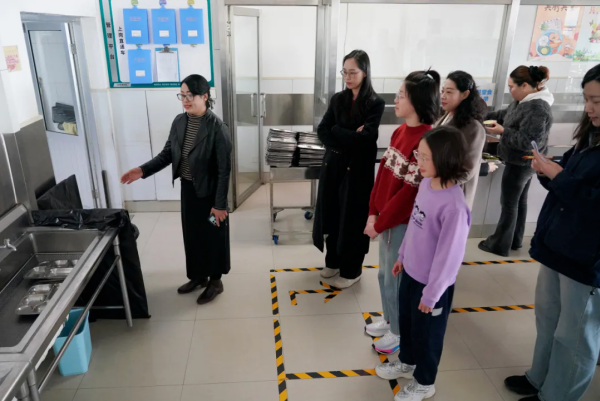 活动现场氛围热烈,大家首先沿餐厅、备餐间、消毒间等一路实地参观食堂,近距离察看食品加工、环境卫生等流程。食堂负责人则介绍了食材采购溯源、食品安全管控、菜品营养搭配等日常运营工作,大家现场相互交流,反馈细节问题。