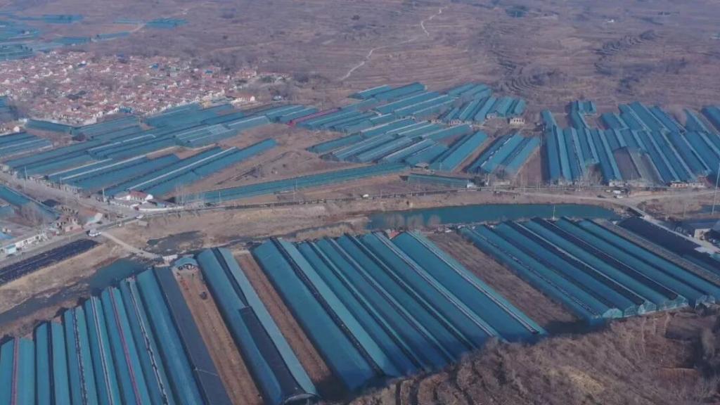 楼底村连片的樱桃大棚