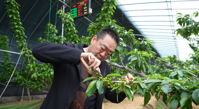 这里四面环山,素有“七山二水一分田”之称,却孕育出1.3万亩大樱桃,其中设施栽培达3000亩,占总种植面积的23%,产业覆盖全镇七成以上农户。去年,该镇樱桃总产量近3000万斤,销售额突破6亿元。