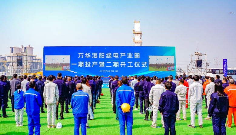 3月28日上午,万华海阳绿电产业园举行一期项目投产暨二期开工仪式。仪式现场彩旗飘扬,工程车辆整齐列阵。随着启动装置的按下,标志着这一省级重大项目建设迈入投产与扩建并行的新阶段。