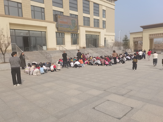 演练前,学校分管安全工作的张召老师对逃生路线、楼层负责教师以及疏散集结点等事项进行了详细部署。接着,随着一阵急促的警报声,防震演练正式开始,各班级学生在班主任的指挥下,弯腰低头迅速从教室跑出,至学校电子大屏幕前集结,整个演练过程用时1分半左右,中途没有出现拥挤踩踏现象,演练达到了预期目的。演练结束后,校长于敬伟作了总结,他呼吁学生们增强防震减灾意识,提升自救互救能力。