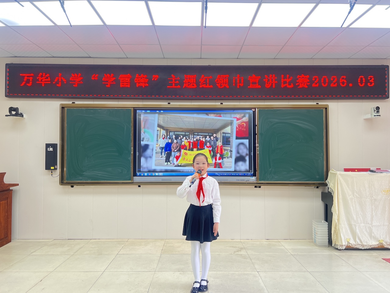 比赛现场,少先队员们精神饱满、声情并茂地讲述了雷锋助人为乐的感人事迹,并结合校园生活分享身边“小雷锋”的故事。他们用童真视角诠释着“奉献、友爱、互助、进步”的精神内涵,充分展现了新时代少先队员昂扬向上的精神风貌。