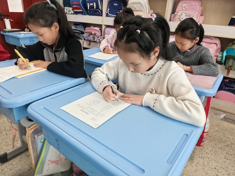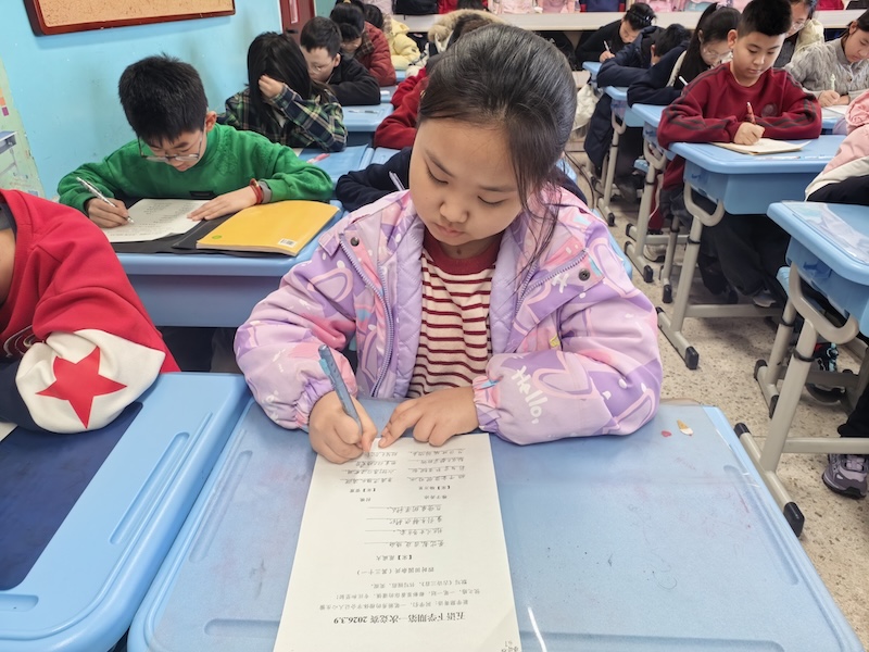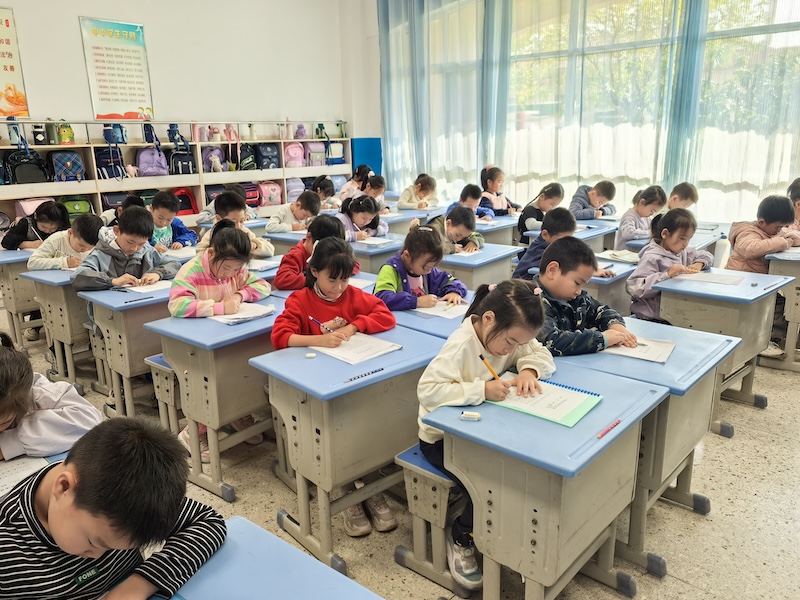 比赛现场,学生们坐姿端正、握笔规范,每一个汉字都力求书写工整美观。赛后,语文老师们组成评审团,从书写规范、字体结构、卷面整洁度等方面对参赛作品严格评选,并在周一的升旗仪式上,为获奖学生颁发“语文素养小达人” 奖状。