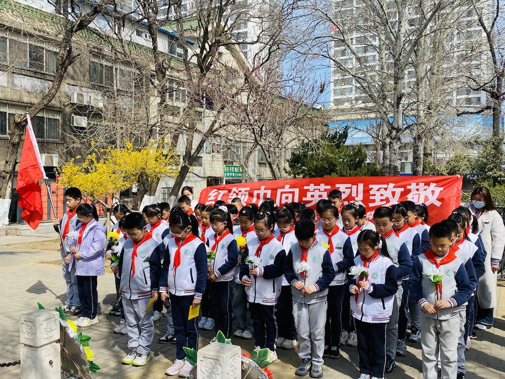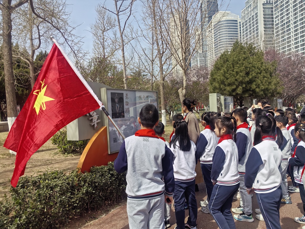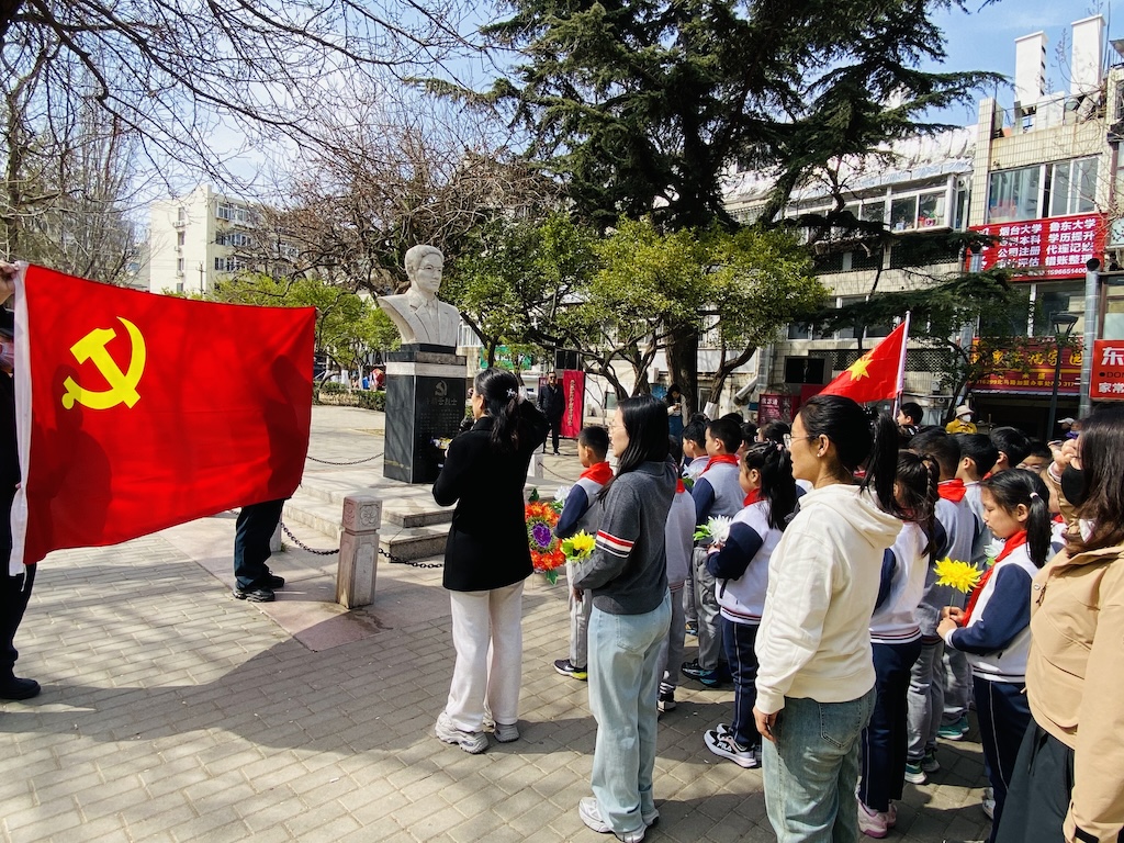 活动中,少先队员深情献词,向许端云烈士敬献花环。全体师生肃立默哀,齐唱《中国少年先锋队队歌》,用少先队员特有的方式表达对先烈的崇高敬意。学校领导带领党员教师重温入党誓词,铮铮誓言响彻教育基地。随后,师生们参观了“火种东山”“芝罘区英模人物榜”“节气与党史”等主题宣传栏,在追寻红色足迹中汲取奋进力量。