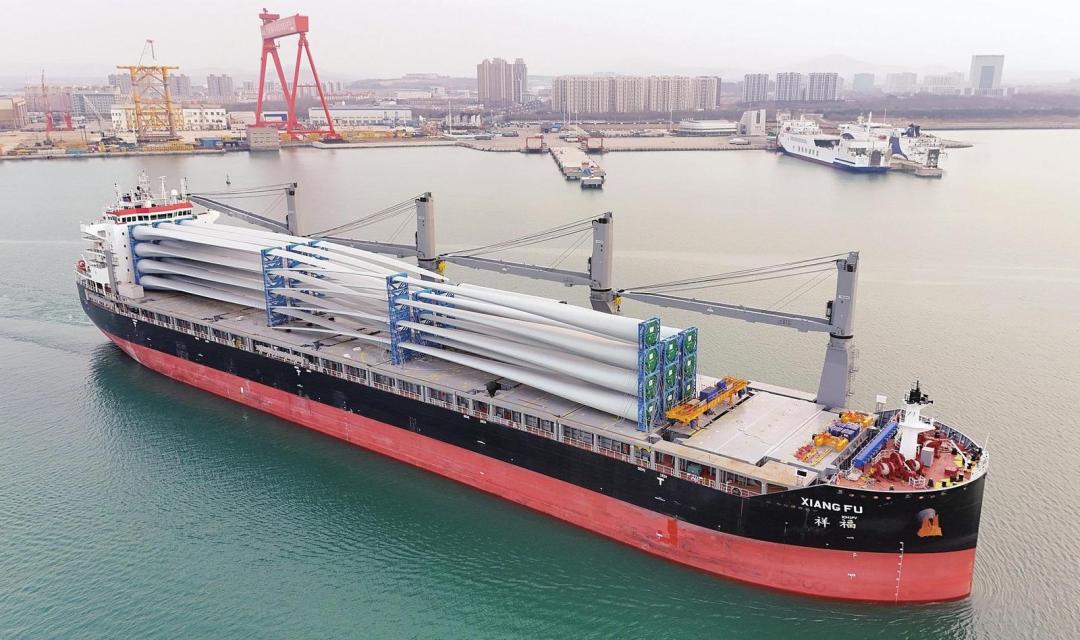 3月28日,7套“蓬莱造”风电设备在烟台港蓬莱港区完成装船并发往奥地利。随着中国风电企业不断拓展欧洲市场,烟台港目前已形成月均2班的欧洲风电设备发运频次,实现了港口物流与风电产业的协同发展。 记者 唐克 摄