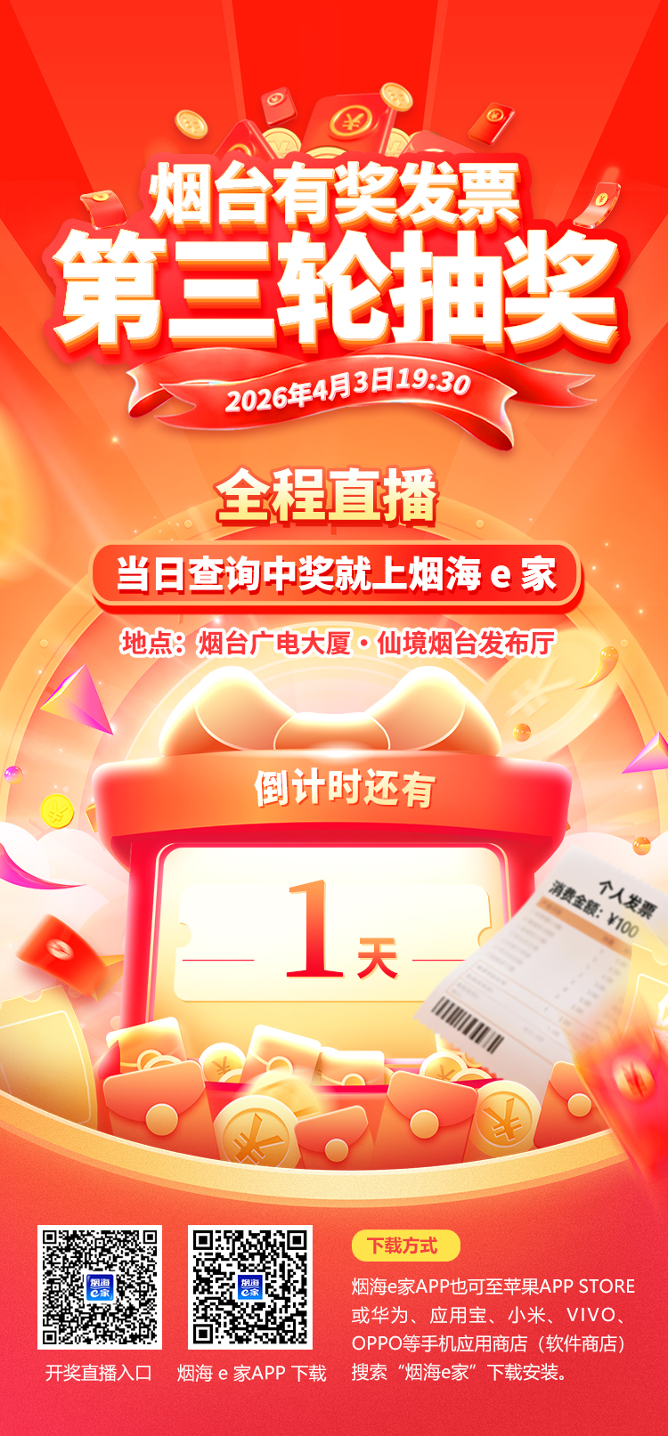 烟台有奖发票第三期抽奖倒计时,锁定烟海e家全程“云开奖”!