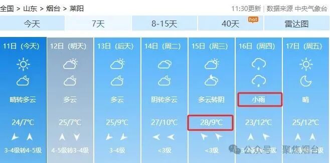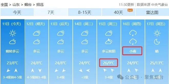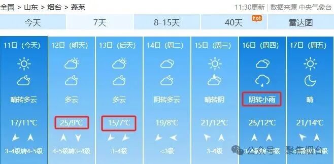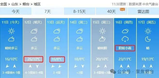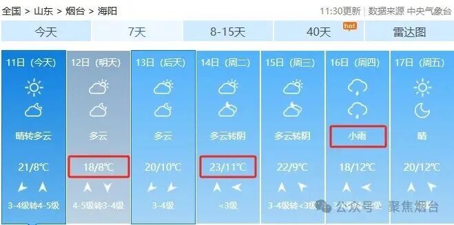 11日下午到12日白天,鲁南地区天气多云间阴,其他地区天气晴转多云。南风,潍坊、日照和半岛地区4~5级阵风6~7级,其他地区3~4级。