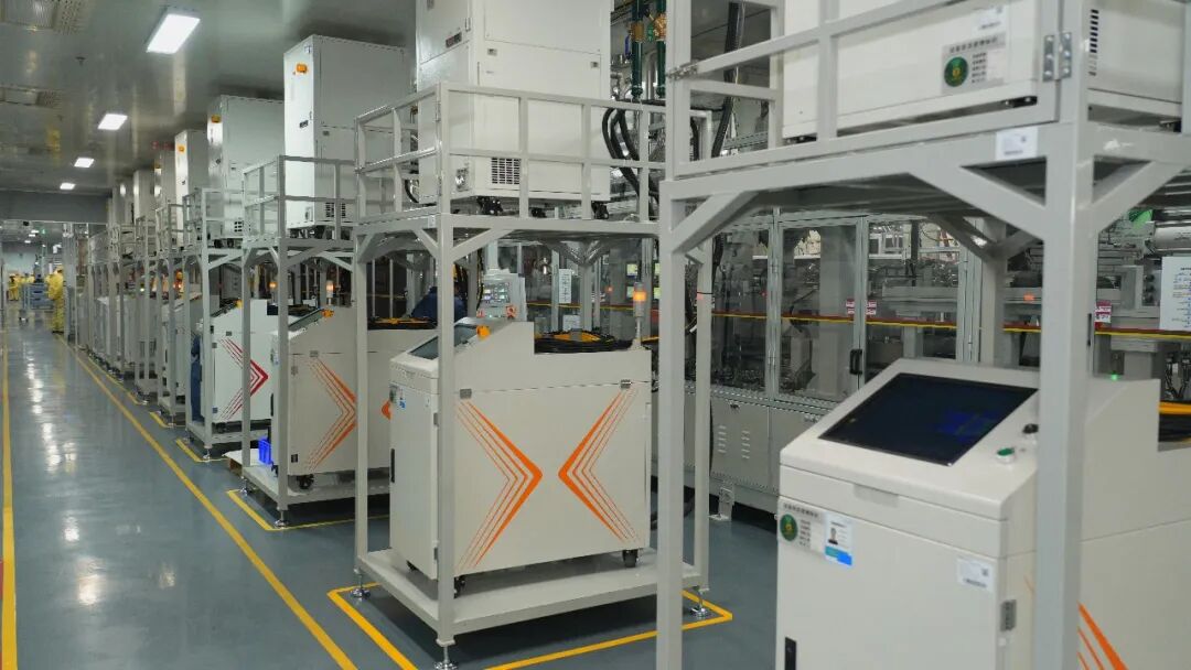 在“刀片电池”装配工序生产车间,车间看不到几个工人,生产线都处于一个巨大的“玻璃房子”里,整个生产过程都实现了全密封。