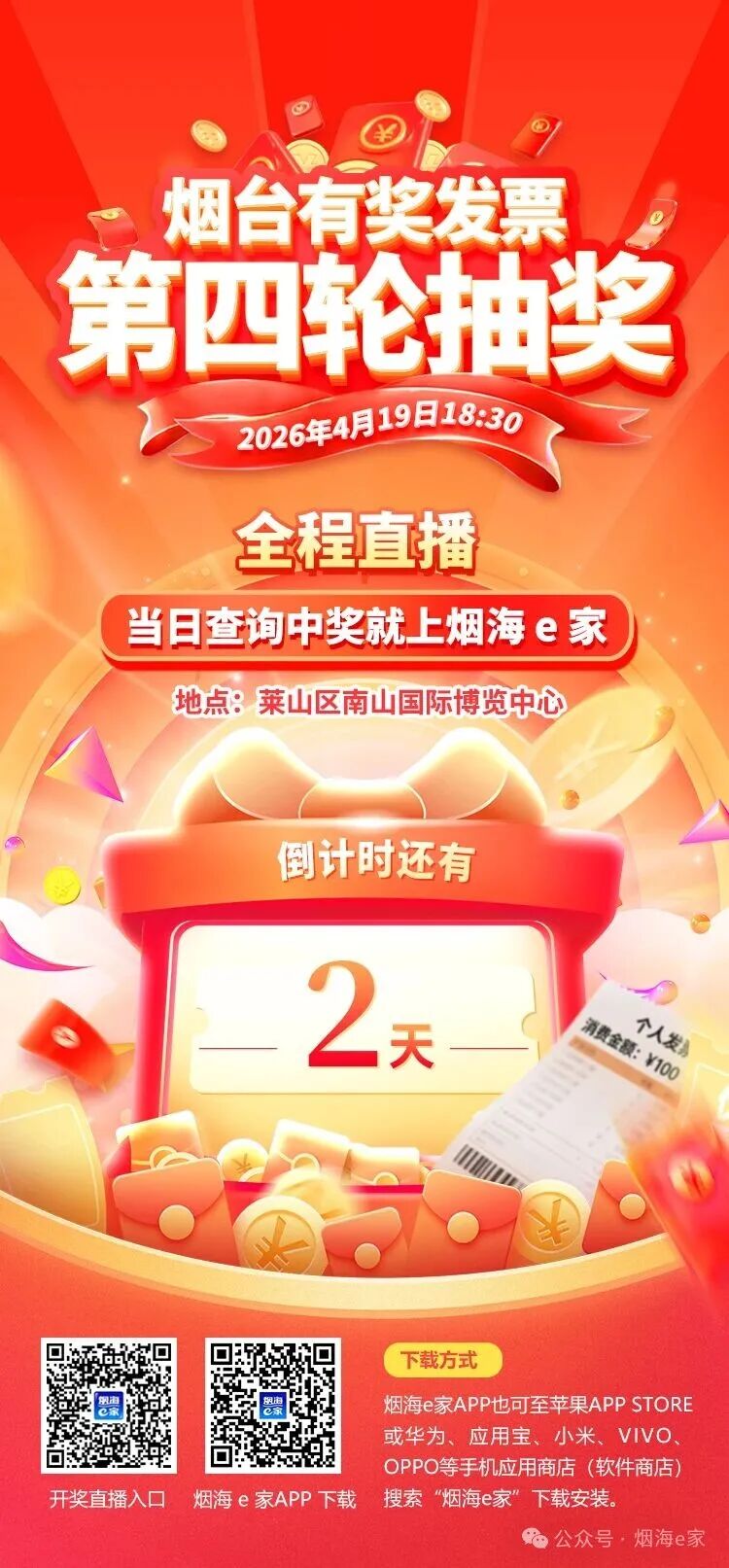倒计时2天!烟台有奖发票第四轮抽奖来了,当日查询中奖信息就上烟海e家客户端