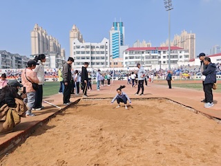 随后,运动员有序退场,各项比赛正式开始。本次运动会设有50米迎面接力、100米、200米、400米、跳高、立定跳远、急行跳远、正面双手头上前掷实心球、投沙包、绕“8”字长绳跳等项目。赛场上,小运动员们奋勇争先、全力以赴;赛场边,加油声、呐喊声此起彼伏。